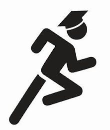The mark consists of side view of a stick figure wearing a mortarboard and running to the right.