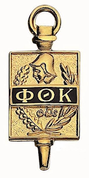 The mark consists of a stylized key design composed of a jeweler's bail at the very top as if inserted in a capping knob connected and centered on the top edge of a rectangular slab. Across the center of the slab is a band upon which three Greek letters Phi, Theta, and Kappa appear. Embossed behind the band is a wreath, on one side composed of oak leaves, and on the other, of laurel. Above the band is a representation of the head of Athena. Below the band appear the Greek letters Phi, Omega and Sigma. Connected and centered on the slab's bottom edge is a finishing horizontal bar under which is a conic point.