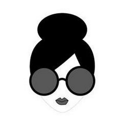 The mark consists of a stylized woman's face featuring large sunglasses with circular lenses appearing above lips, and hair which is in a bun.