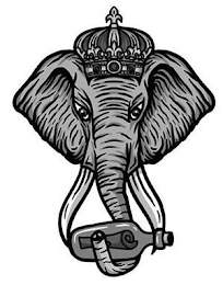 The mark consists of a stylized image of an elephant with tusks wearing an ornate crown holding in its trunk a glass bottle with a cork in its top containing a rolled-up piece of paper.