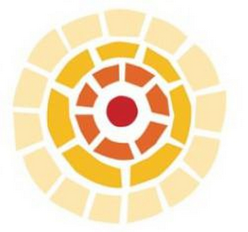 The mark consists of a circular shape with a red circle in the middle and three larger concentric outer circles, with orange dashes making up the innermost circle, yellow dashes making up the following circle, and peach dashes making up the outer circle.