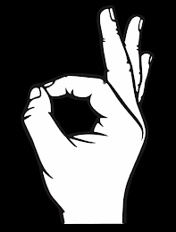 The mark consists of the stylized profile of a right hand touching the thumb and pointer fingers in an OK sign.