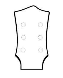The mark consists of a two-dimensional configuration of a guitar headstock. The broken lines depicting peg holes indicate placement of the mark on the goods and are not part of the mark.