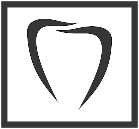 The mark consists of a free form drawing of a human tooth, enclosed in a square box, the tooth comprising two inverted "L" shaped lines, the left one pointing in the right direction and the right one pointing in the left direction, each comprising a thick line ending at each end in a point.