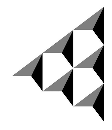 The mark consists of six triangular objects in a pyramid formation with one at the top, two in the middle row, and three on the bottom, collectively making a triangular shape with the right side straight up and down. The six triangular objects are actually made up of two triangles each, with the left one a lighter shade than the right.