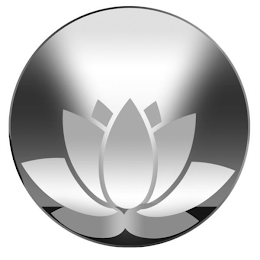 The mark consists of a stylized lotus flower with a light beam emanating upward from its petals, all overlying a shaded circle.