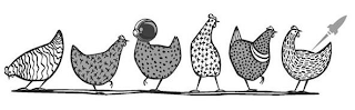 The mark consists of six chickens with the third chicken is wearing a rocket helmet and a rocket design adjacent to the last chicken.
