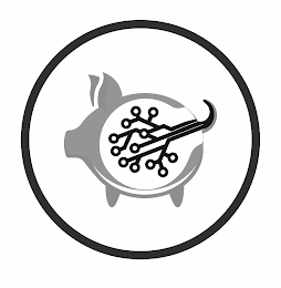 The mark consists of a seal of stylized pig having a branched node all of this is within a bolded circle.