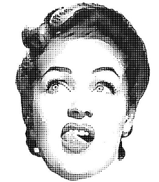 The mark consists of a woman's head looking up to the right with her tongue moving across her teeth.