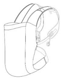 The mark consists of a three-dimensional configuration of a baby carrier. The broken lines depicting the straps, buckle, and belt indicate placement of the mark on the goods and are not part of the mark.