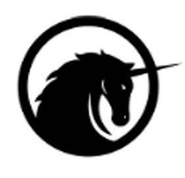 The mark consists of a right-facing profile of a unicorn inside a circular border with the horn of the unicorn extending beyond a right portion of the circular border.
