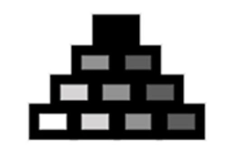 The mark consists of a pyramid of blocks with 4 on the base and 1 on the top.