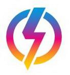 The mark consists of a stylized lightning bolt within a circle, depicted in a color gradient that starts blue on the top, and then fades to purple, magenta, red, orange, and finally yellow on the bottom.