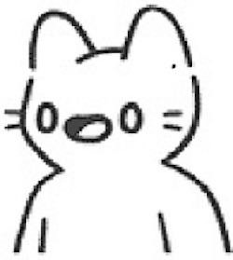 The mark consists of a characterization drawing of a cat with whiskers and shoulders.