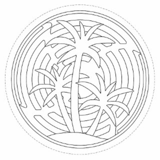 The mark consists of a three-dimensional configuration comprising a design of the lid for a fragrance container with the lid featuring three palm trees surrounded by curved band cut-outs. The broken or dotted lines depicting the shape of the container lid is not part of the mark and serves only to show the position or placement of the mark on the goods.