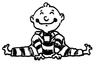 The mark consists of an image of a child in a striped outfit sitting with legs spread open.