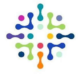 The mark consists of four central dots in the color teal, turquoise, gold and red surrounded by an array of three point splatters in the colors royal blue and green with two point splatters in the colors of turquoise, dark blue, orange and purple with four external dots in the colors of magenta, purple, dark blue and teal.