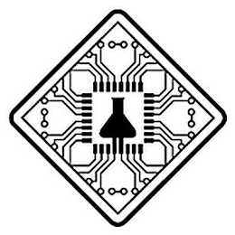 The mark consists of two diamond designs of which the smaller diamond is inside the larger diamond without overlapping. A triangular medical flask appears in the center of the mark surrounded by a processor chip on a circuit board within the smaller diamond. The lines of the circuit board constitute a four-fold symmetry.