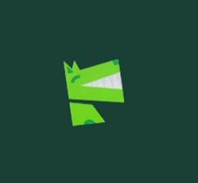 The mark consists of a design of a dog in light green with dark green nose, dark green eyelids, dark green inner ears, and white and light grey teeth, with the dog wearing a dark green collar.
