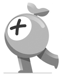 The mark consists of a shaded circle with a smaller circle in its center offset to the upper left with a solid colored "+" symbol in the center and a sprout shape protruding from the top right side of the larger circle; with two legs with feet protruding from the bottom of the circle, the left leg being rectangular in shape and slanted to the left and the right leg being curved and kicking out to the right, all above a thin horizontal line.