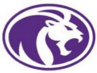 The mark consists of a purple and white lion head drawing facing right in an oval purple circle.