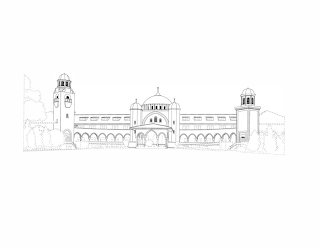 The mark consists of a three-dimensional configuration comprising the trade dress of the architectural design of the facade of the Medinah Country Club clubhouse building described as blending the classic lines of Byzantine, Oriental, Louis XIV, and Italian architecture, including the arches, portico, towers, and domes, finials on the domes, dormers, columns, balconies, arched window frames, door arches, wall arches, roof and overall building facade. The broken lines serve to show positioning of the trademark and are not claimed features of the mark, but are intended to show the three-dimensional configuration of the trademark.