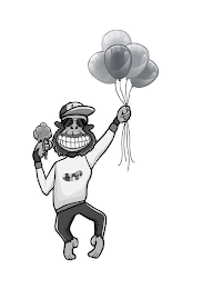The mark consists of a smiling monkey wearing sunglasses, a hat, and a sweater that features a toothy smile. The monkey is holding a melting ice cream cone in one hand and balloons in the other.