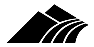 The mark consists of a mountain landscape having a curved river on the right side of the mountains.