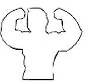 The mark consists of a drawing of a muscle man with both arms outstretched to the sides of the head with both hands in a fist.