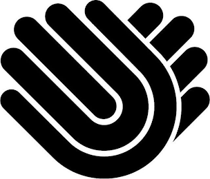 The mark consists of Stylized image of overlapping hands, each at a forty-five degree angle.