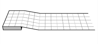The mark consists of a stylization of a stack of rectangular sheets of flat material containing a grid design, joined to each other, partially extended towards the right, and with no right-side edge.