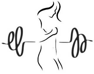 The mark consists of an outlined side profile body silhouette of a female with an outlined dumbbell bar in the back.