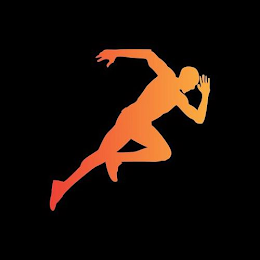 The mark consists of a black background with an orange and yellow silhouette figure of a human running.