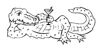 The mark consists of depiction of an alligator wherein the alligator is lying in a relaxed pose and holding a martini.