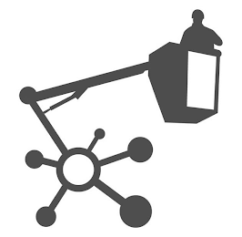 The mark consists of a circle surrounded by dots from which is extending a lift carrying a workman.