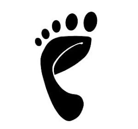The mark consists of representation of a footprint with the five ovals representing the toes overlying a curved representation of a heel and a sole.