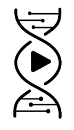 The mark consists of two lines intertwining with each other. Three lines at the top and bottom with a dot at the end of reach line. In the center of the two curves is a triangle with the point to the right.