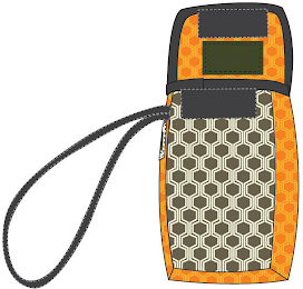 The mark consists of a three-dimensional configuration of a soap pouch. The soap pouch consists of a gray and white rounded rectangle in a mesh design enclosed in an orange and light orange mesh design; there is a black looped cord extending from the side and black edges around the top of the pouch. There is a green square in the center of the top of the pouch. There are two black squares above and below the green square. On the left side of the soap pouch is a green square outlined in white. The broken lines depicting a black cord indicate placement of the mark on the goods and are not part of the mark.