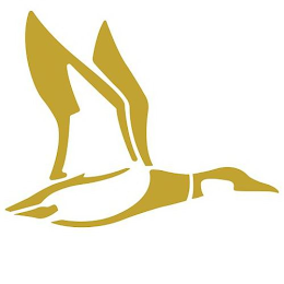 The mark consists of an abstract image of a gold and white flying duck.