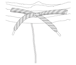 The mark consists of a repeating pattern design of a garment drawcord featuring multiple light gray lines running parallel to one another diagonally on an off-white background across the length of the drawcord. Each diagonal line is comprised of light gray rectangles adjacent to one another, creating the impression of a light gray line. The mark does not include the shape of the drawcord. The matter appearing in dotted lines is not part of the mark, and shows only the placement of the mark on goods.