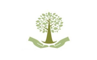 The mark consists of two stylized light green open hands with fingers touching, holding a stylized olive green tree trunk with stylized light green leaves arranged in a circle.