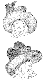 The mark consists of a three dimensional configuration of a hat constructed by feathers with two long feathers above the hat brim. The broken lines that depict a person's head is for the purpose of showing how the hat is worn and is not a part of the Mark.