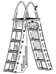 The mark consists of three-dimensional depiction of a five-rung a-frame pool ladder, each rung including ten parallel and equally spaced depressions along its length. The vertical face of each rung includes two parallel and equally spaced depressions along its length. The vertical face of the top deck includes two parallel and equally spaced depressions along its length. From the top deck of the ladder, two vertical, ovular handrails protrude. The vertical sides of the ladder include a rectangular cutout next to each horizontal rung in which the square end of each horizontal rung is placed, between each rectangular cutout being a vertical depression. One side of the a-frame ladder includes a retractable piece being the length of the rungs of the ladder on the outer side of the rungs, the retractable piece including parallel and equally spaced depressions along its length. The other side of the a-frame ladder includes a retractable piece being the length of the rungs of the ladder on the inner side of the rungs, the retractable piece including parallel and equally spaced depressions along its length. Between the vertical sides of the ladder at the height of the top horizontal rung is a rectangular rail that runs parallel to the top deck of the ladder and perpendicular to the rungs of the ladder. Two of the vertical sides of the ladder increase in width towards the bottom of the ladder. Within the widened portion of the side of the ladder are three vertical, parallel and equally spaced depressions of increasing length.