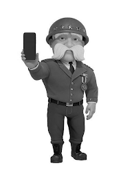 The mark consists of a cartoon character of a general with a large mustache holding up a cell phone with his right hand.