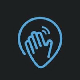 The mark consists of a map pin in blue, forming a person's hand in blue at the lower end, and two curved lines in blue above the hand. The color black represents background, outlining, shading, and/or transparent area and is not part of the mark.