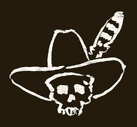 The mark consists of A sketch-drawing of a skull wearing a wide-brimmed cowboy hat with a striped feather sticking up from the brim.