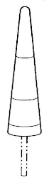 The mark consists of a three-dimensional conical configuration of the goods comprising transverse color bands. The broken lines depicting the lollipop stick indicate placement of the mark on the goods and are not part of the mark.