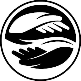 The mark consists of The circle surrounding two hands. One hand is on top of the other in cradling motion. The direction of hands is opposite each other. Separating the hands in the middle is stylized wave that flows and translates into background image of semicircle encompassing one of the hands. Hands are shaped to conform to outlines of the circle on the outside edges and of the wave in the middle.