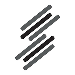 The mark consists of six slanted, parallel lines arranged in a stylized design. From the top of the design, the first, third, fourth, and sixth lines are grey, and the second and fifth lines are black. All white in the mark represents transparent background space and is not part of the mark.