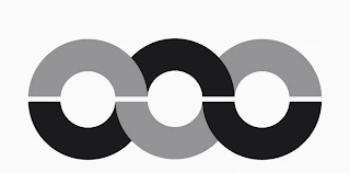 The mark consists of three horizontally linked circles with breaks in the middle. The following parts appear in a darker shade: the bottom half of the left circle, the top half of the middle circle, and the bottom half of the right circle.